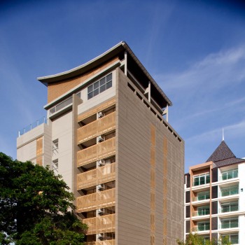 The about 440 square meters of project site had been developed for 3,250 square meters of built up area. Simple lines for overall and details for architecture reflecting the peaceful also relaxation, but still be in mood of thai spirit. The approaching lobby represent “Chaan” while some accent shown thai pattern but keeping the simply and modernized character.